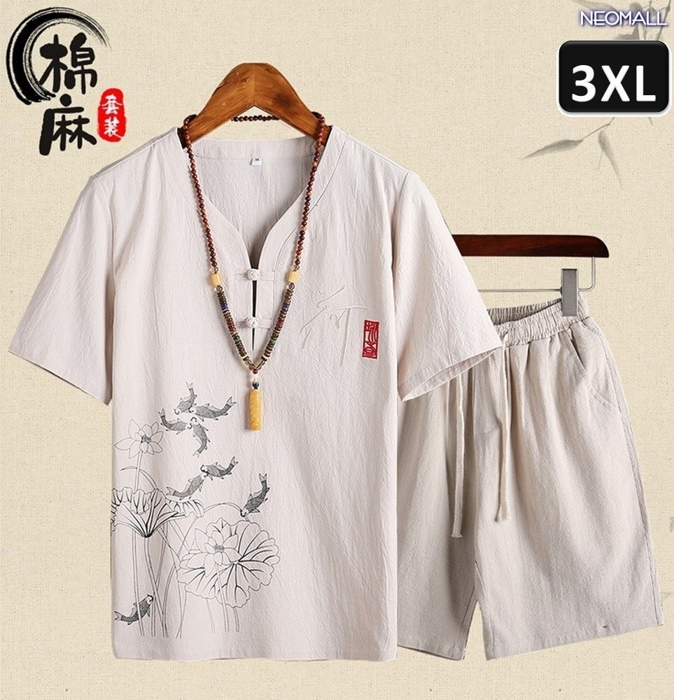 - 夏にピッタリ 【408】ルームウェア セットアップ ベージュ 3XLサイズ 半袖 パンツ メンズ 部屋着 メンズ オフ 清涼