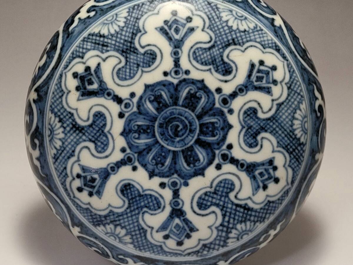 - ● 幅 約 13.6cm 吉祥の花紋と纏枝紋が洗練され美しい 時代唐物 「大明宣徳年製」銘 染付 吉祥花紋 盖盒・明清時代 盖盒 蓋物 薫香 ●