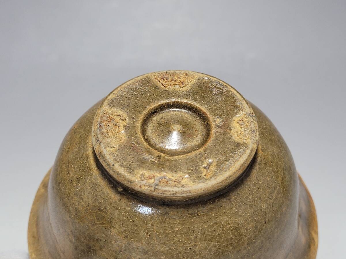 - ● 幅 約 9cm 深い秋色の釉薬と花型の形が美しく 広い高台が安定した 時代唐物 青磁 茶杯・五代唐時代 盃 小碗 杯 盞 小鉢 茶道具 ●