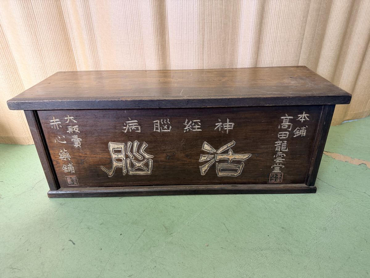 > Z家A406 薬屋番台 神経脳病 活脳 本舗 高田龍雲堂 薬屋文机 木製 アンティーク インテリア 当時物 レトロ 昭和レトロ 大正レトロ 薬棚