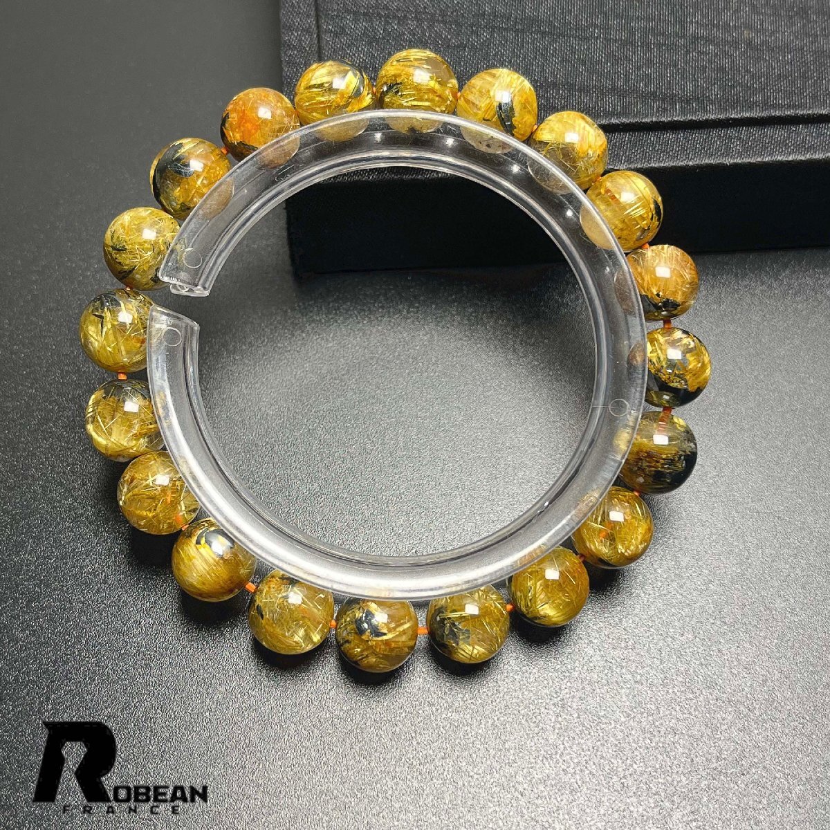 > 上級 EU製 定価30万円★ROBEAN・太陽花タイチンルチル★黄金針水晶 金運 開運 ゴールド ブレスレット パワーストーン 9.4-9.8mm K0408582