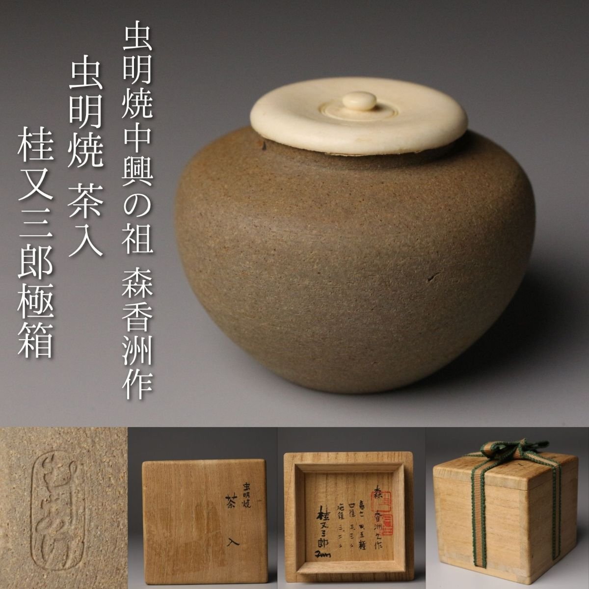 - 【LIG】虫明焼中興の祖 森香洲作 虫明焼 茶入 桂又三郎極箱 茶道具 旧家収蔵品[.Y]25.11