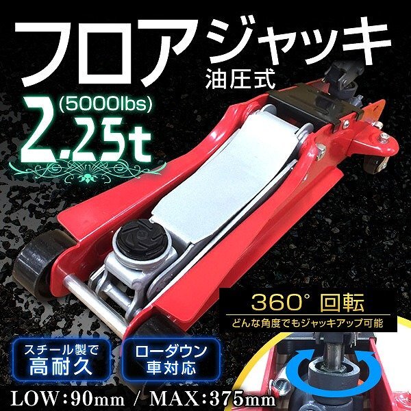 - 【2.25トン】フロアジャッキ 2.25t 低床 油圧 ガレージジャッキ 保護用ゴムパッド付き 軽量 ジャッキ タイヤ ホイール 交換 整備 おすすめ