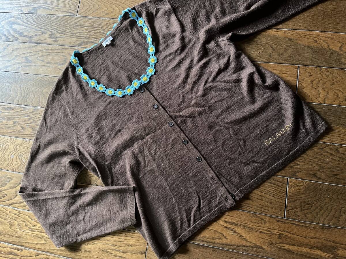 - BALMAIN バルマン こげ茶色 ニット カーディガン 長袖 レディース