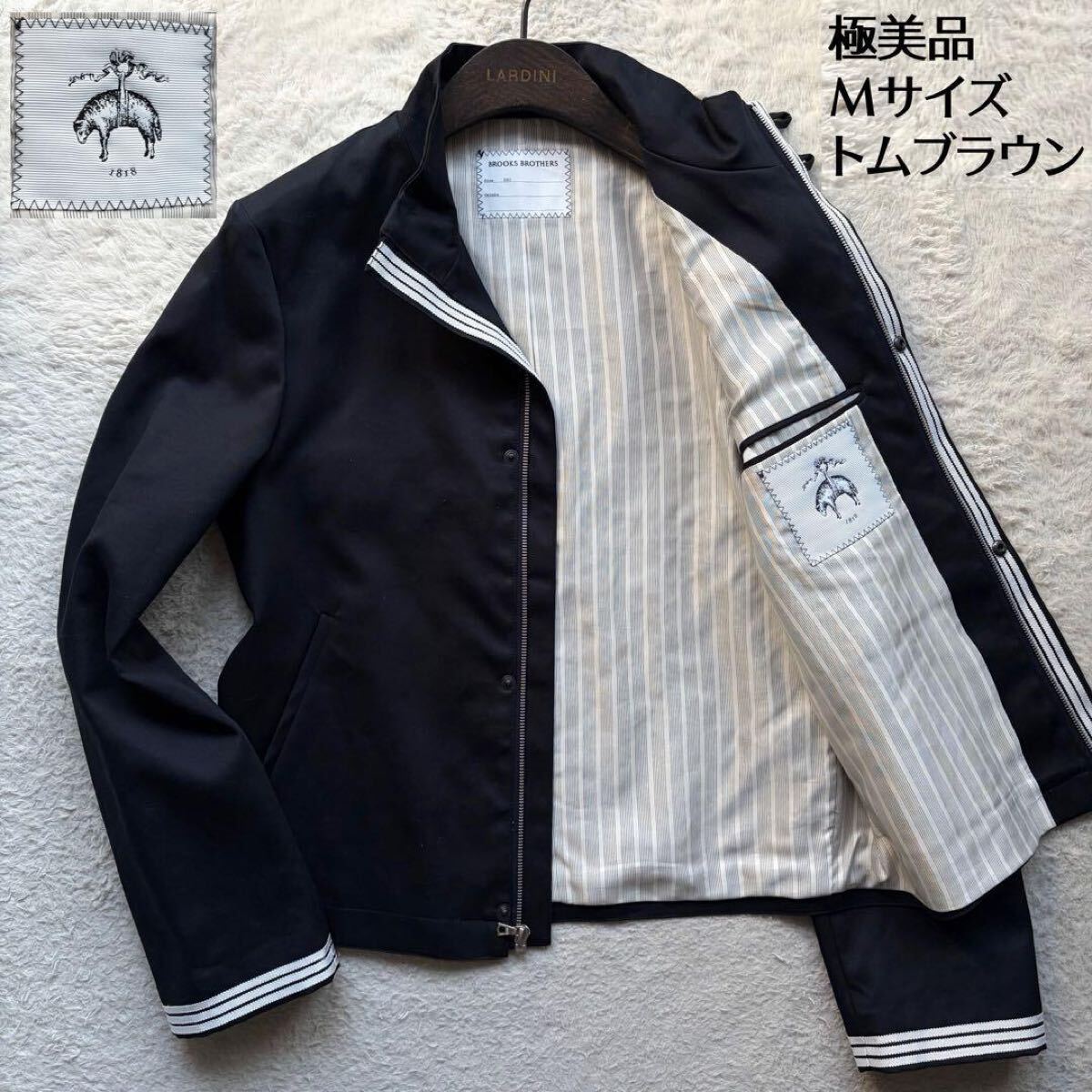 > 【溢れ出る高級感 極美品】ブルックスブラザーズ ブラックフリース ブルゾン ジャケット コットン ネイビー Mサイズ 最高級 トムブラウン