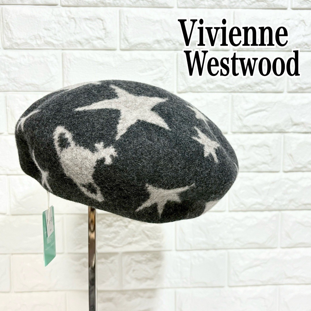 - ヴィヴィアン ウエストウッド ベレー帽 ウール オーブ & スター 未使用 タグ付き ブラック M-S サイズ調整機能 帽子 Vivienne Westwood