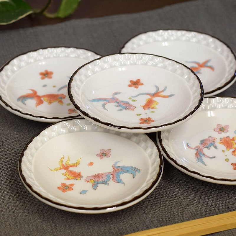 - 【即決】九谷焼 豆皿5枚セット 金魚 / おしゃれ 和食器 お皿 小皿 日本製 伝統工芸 人気 ブランド 陶器 食器 美品 新品 未使用
