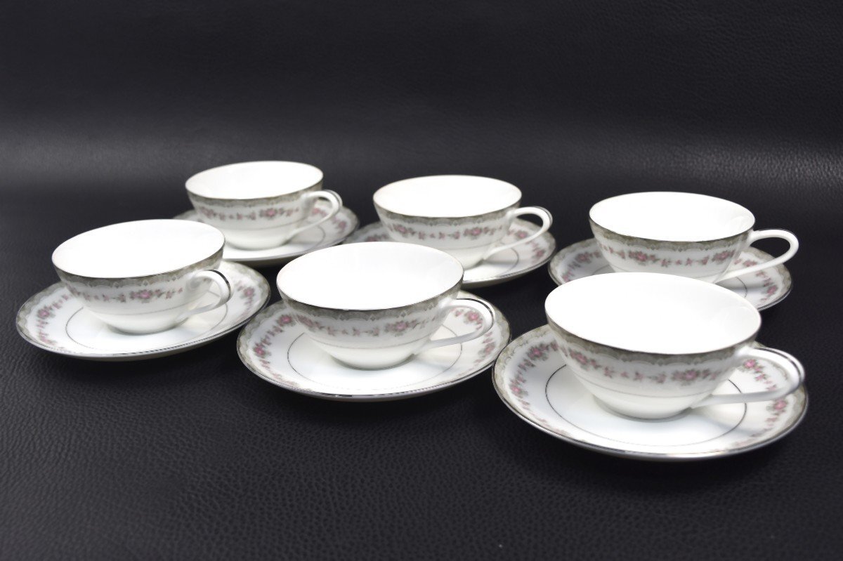 - [未使用品 ノリタケ] 月桂樹 RC印 薔薇文様 カップ&ソーサー 6客組 C&S セット オールドノリタケ 花柄 ローズ ピンク