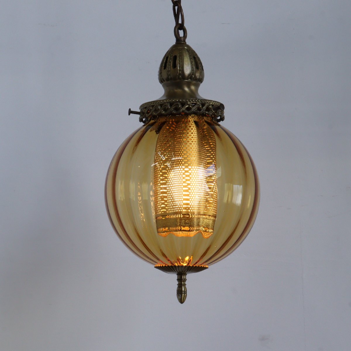 > 50s 60s ヴィンテージ アンバーガラス ペンダントランプ/アメリカ アンティーク 吊り下げランプ カフェ 照明 ガラス#702-70-1-182
