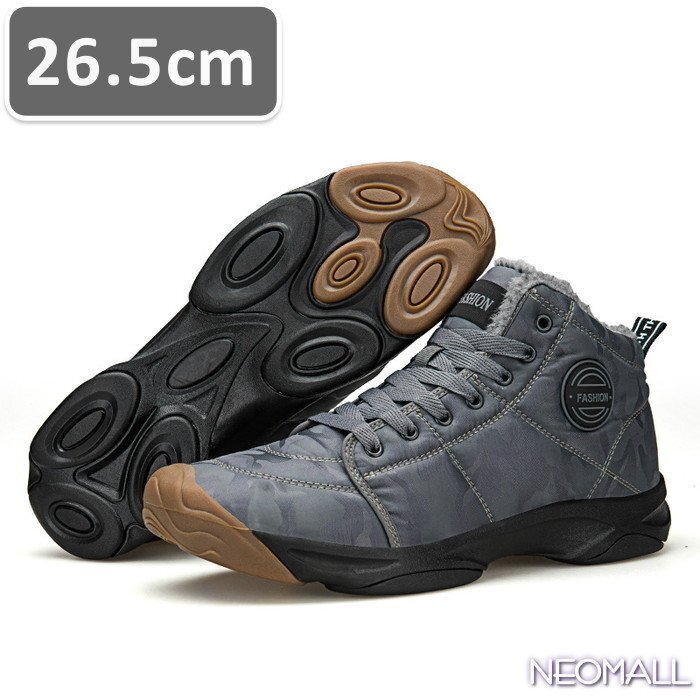 - メンズ スノーシューズ 【864】 26.5cm 迷彩グレー ムートンブーツ スニーカー ウィンターブーツ 裏起毛 防水 防寒 防滑 冬用靴 綿靴