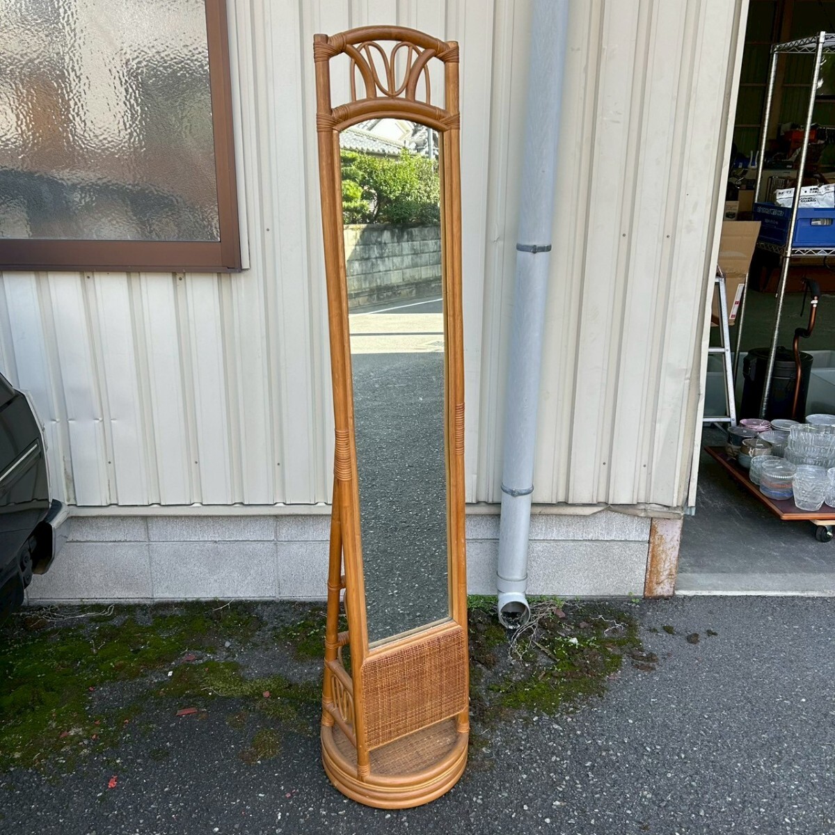 - KOIZUMI コイズミ ラタン スタンドミラー 鏡 ミラー 大型 全身鏡 姿見 昭和 レトロ アンティーク インテリア スリッパホルダー付 回転式