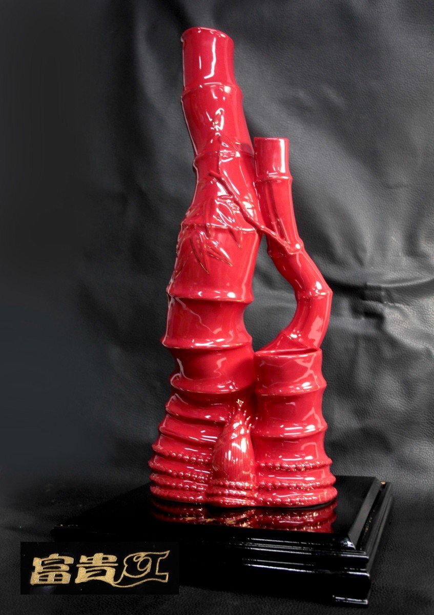 - 富貴紅 FUGUIHONG 盛世・国宝 竹 陶器 陶磁器 赤釉 赤色 紅色 金彩 オブジェ 置物 貴重品 珍品 工芸品 中国美術 芸術 コレクター