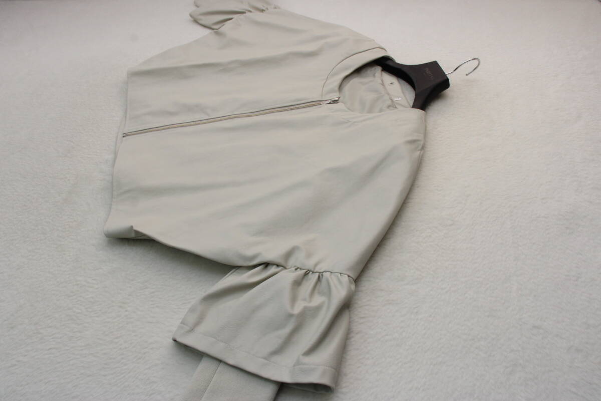 - 6878 新品 フリルスリーブフェイクレザーブルゾン 定価¥20,000税込み