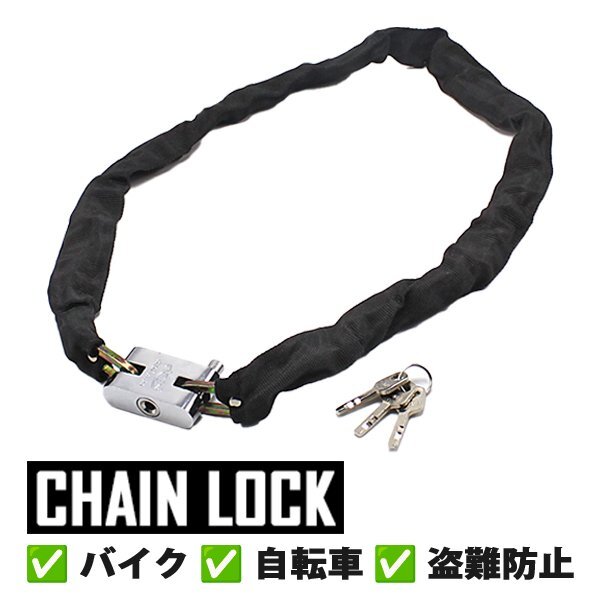 > バイク用 特殊硬化スチール チェーンロック カギ3本付属 盗難防止 安心 90cm オートバイ 自転車 防犯対策