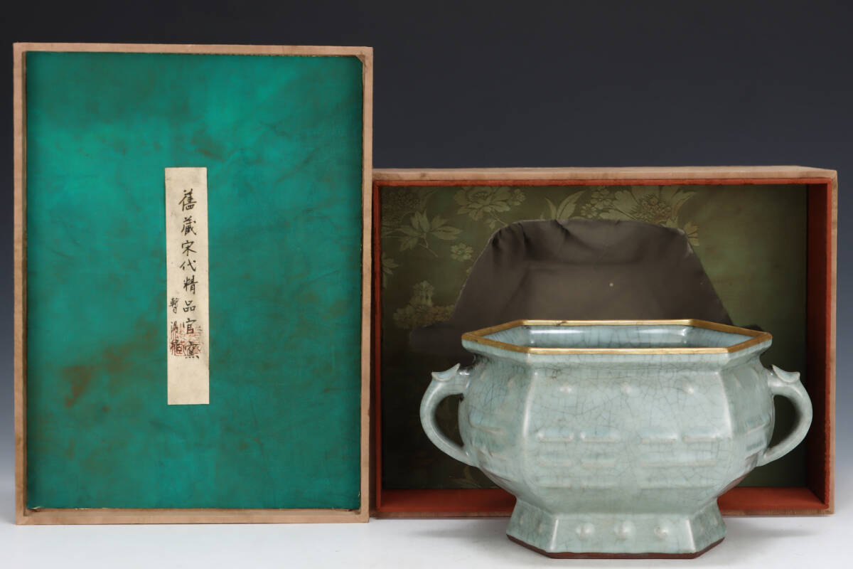 - 旧蔵 宋代 官窯 灰青釉 八卦紋 雙耳香炉 古陶瓷品 陶藝 古擺件 古置物 中国古玩 骨董品 時代物 稀少唐物