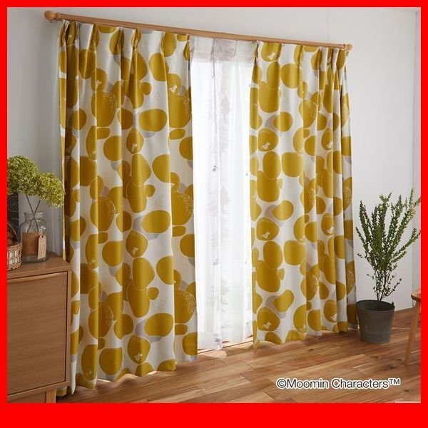 - カーテン★新品/MOOMIN ムーミン ドレープカーテン 100×135cm 1枚/遮光 洗濯機可 形状記憶加工 安心安全の日本製/イエロー/a3