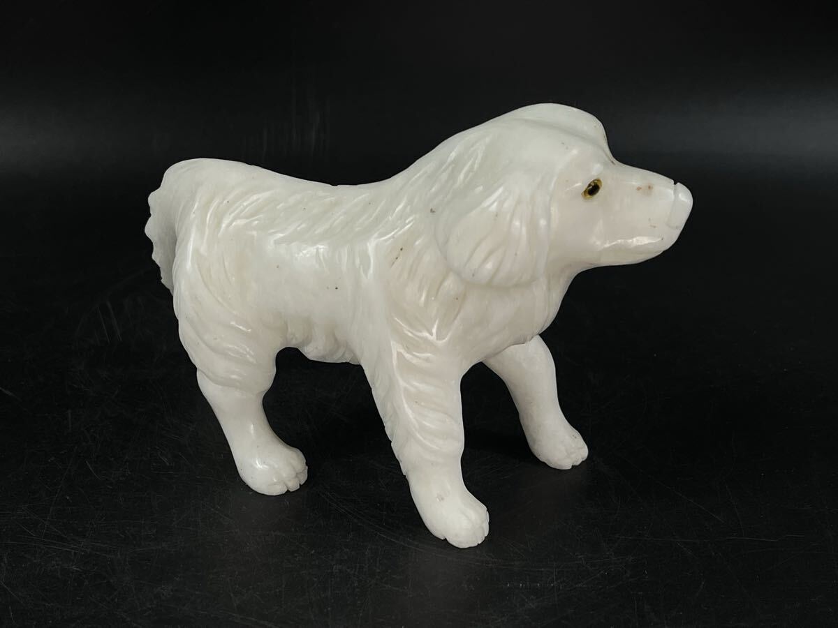 - 清代 白玉 犬 置物 彫刻細工 当時物 唐物 和田玉白玉 骨董 古玩 時代物 天然石保証【博圓】重471g