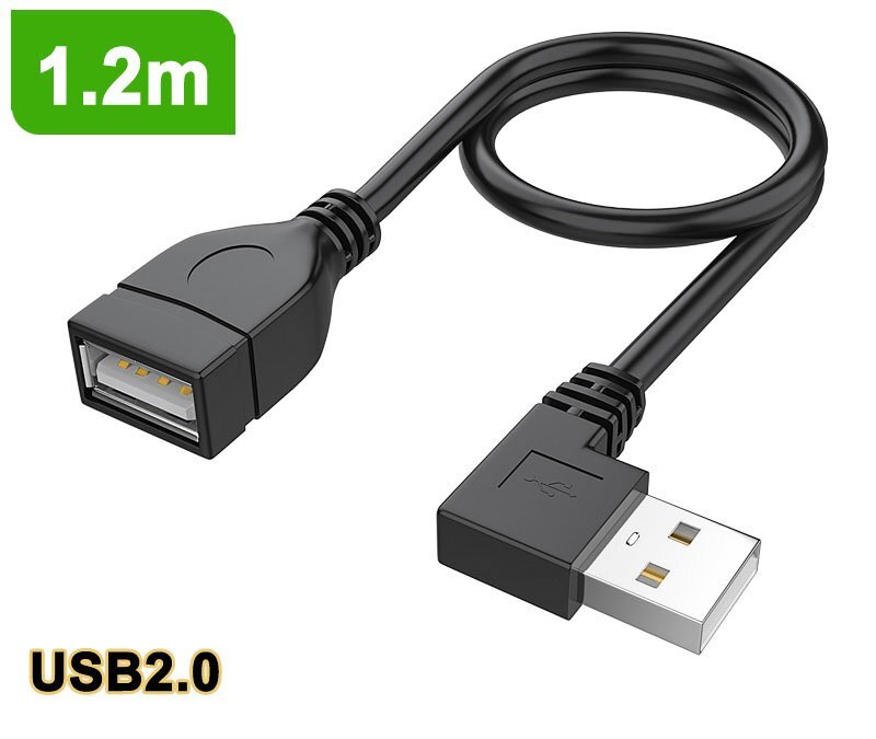 - 1.2m USB 2.0 右L型 90°方向変換ケーブル 延長ケーブル