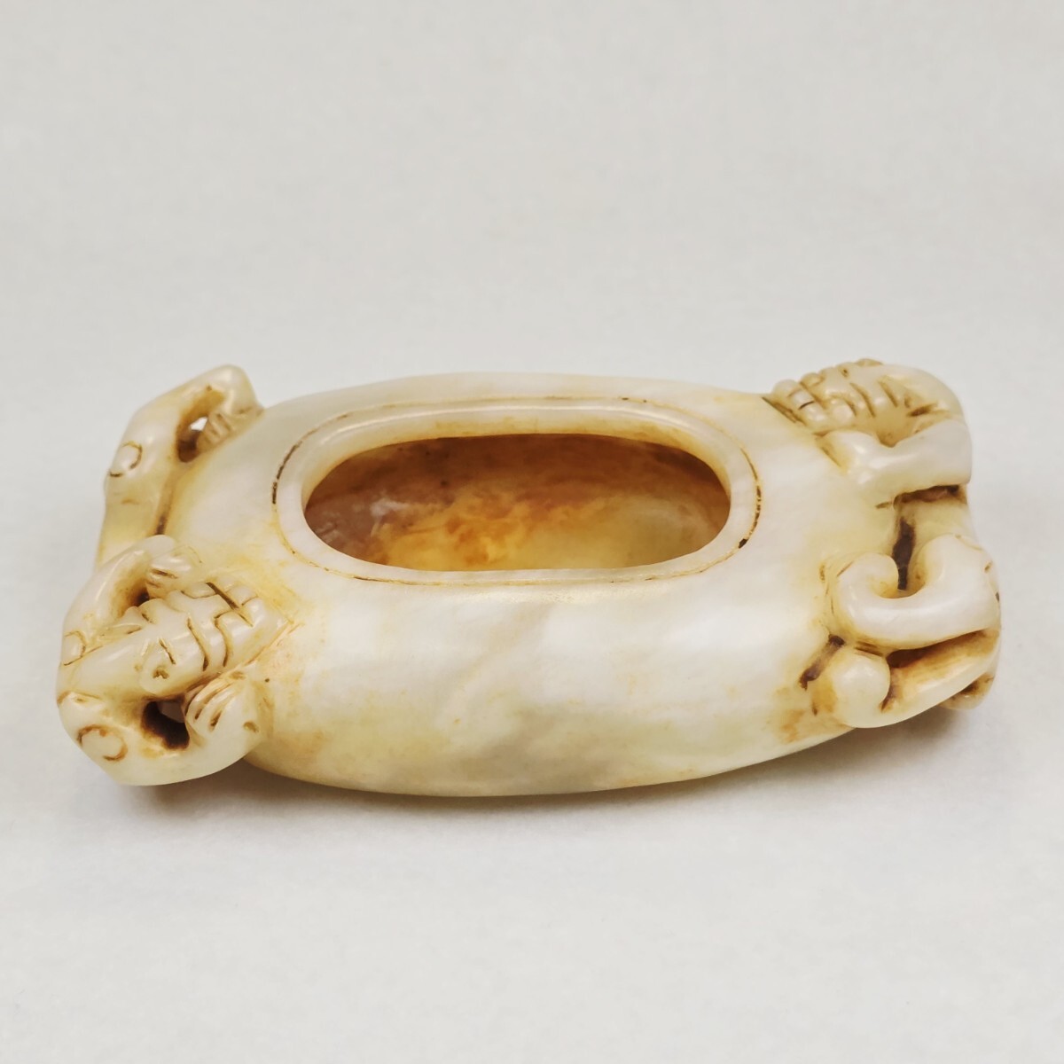 - 古文房具 本物和田白玉 原石 手彫 清代 双龍出郭 筆洗 筆添 墨池 水鉢 激安