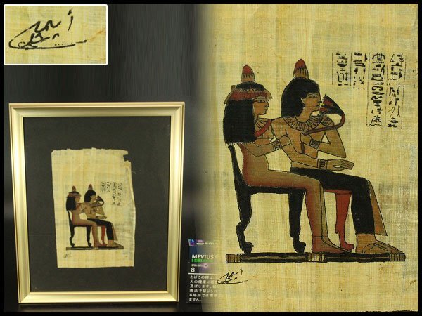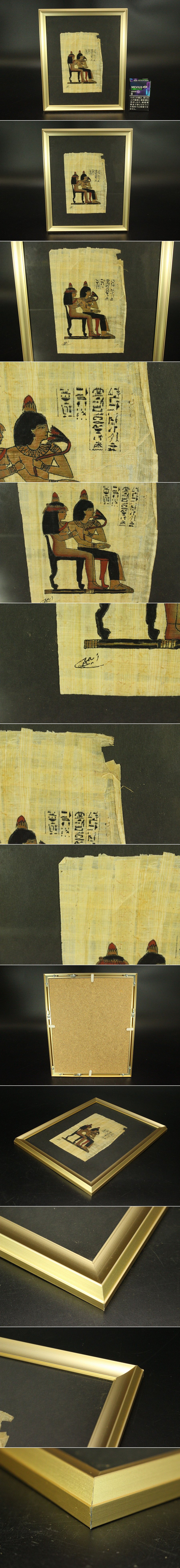 - 【銀閣】エジプト パピルス 人物紋 額入 うぶ出し 送料無料(P119)