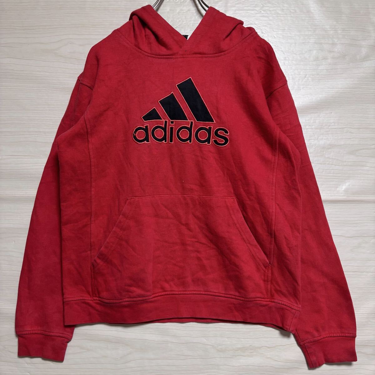 > adidas アディダス プルオーバーパーカー フーディー スウェット ロゴ刺繍 サイズL レッド 赤 コットン レディース トップス(47)