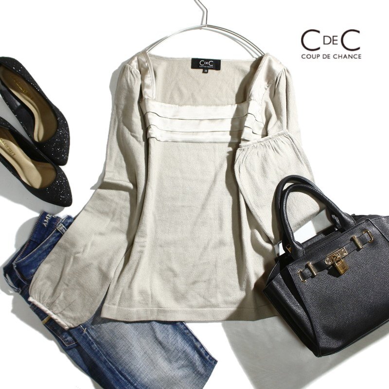 - 美品 COUP DE CHANCE クードシャンス 株) ワールド 秋 冬 毛25% デザイン スクエアネック ウール混 ニットカットソー 38 M ベージュ 上品