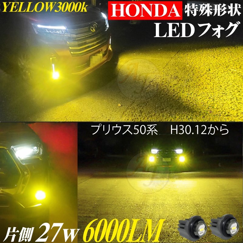 > トヨタ 新型 LEDフォグランプ プリウス50系 ZVW51/ZVW55 H30.12~ LEDフォグ バルブ イエロー 3000k 2個セット 6000LM TOYOTA PRIUS 50