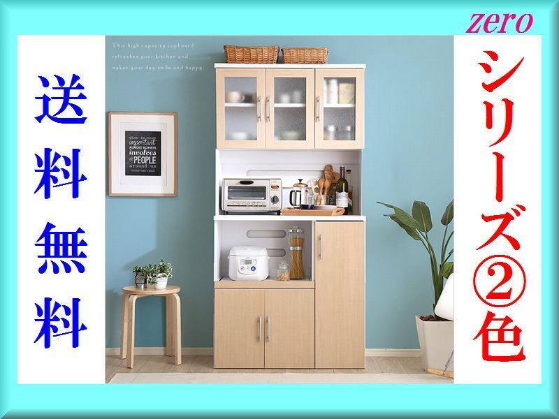 - 食器棚★ミストガラスとツートンカラーのおしゃれな食器棚 キッチンボード レンジ台/幅90cm/木目調のオークとウォールナット/新品 激安/zz