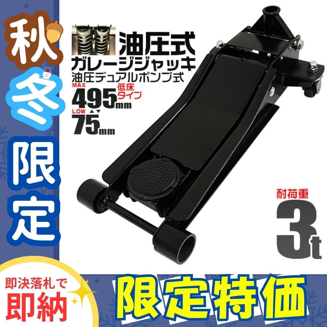 > ★冬季 限定価格★ブラック ローダウン フロアジャッキ 耐荷重3t 最低位75mm 低床 ガレージ ジャッキ 保護用ゴムパッド付 タイヤ 交換 整備