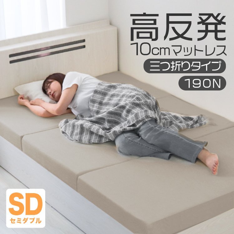 - 【セミダブル ホワイトグレージュ】三つ折りマットレス 高反発 190N 極厚10cm 高反発マットレス パイル生地 ベッドマットレス ベッドマット