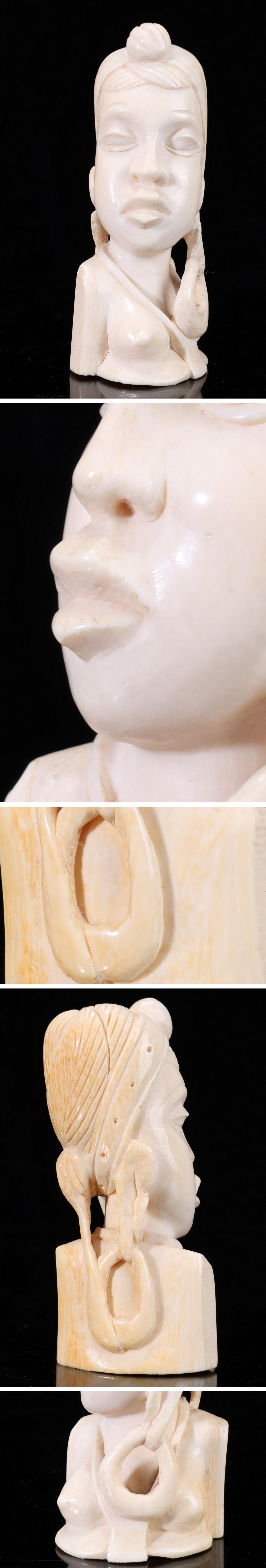 - 【珍品堂】1円から N100-V8 東洋彫刻 人物像 女の子 細密彫刻 細密細工 極上 重317g 時代物 鑑賞品 骨董品 古美術 希少