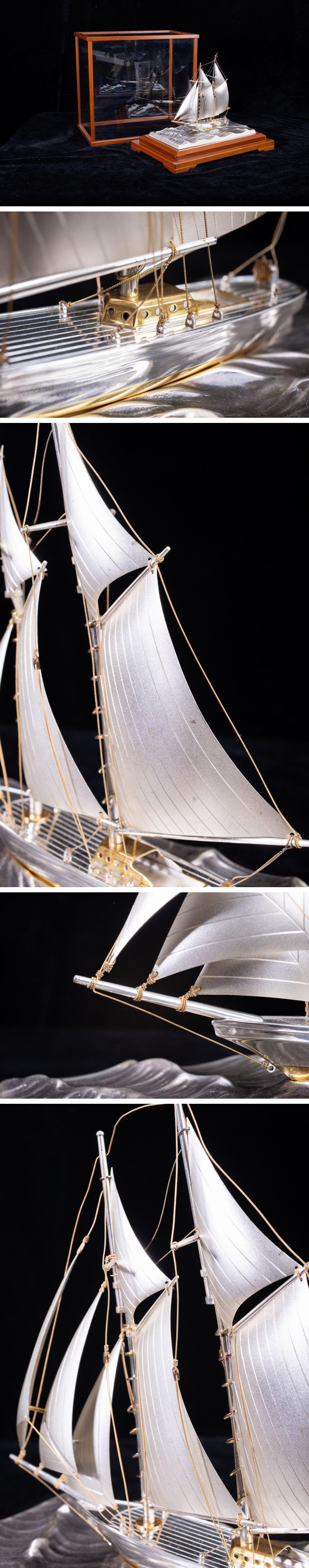 - 【珍品堂】1円から N37-V18 銀製 ヨット シルバー 在銘 帆船 時代物 高31.5㎝ ケース付 共箱 木箱 縁起物 鑑賞品 骨董品 古美術 希少