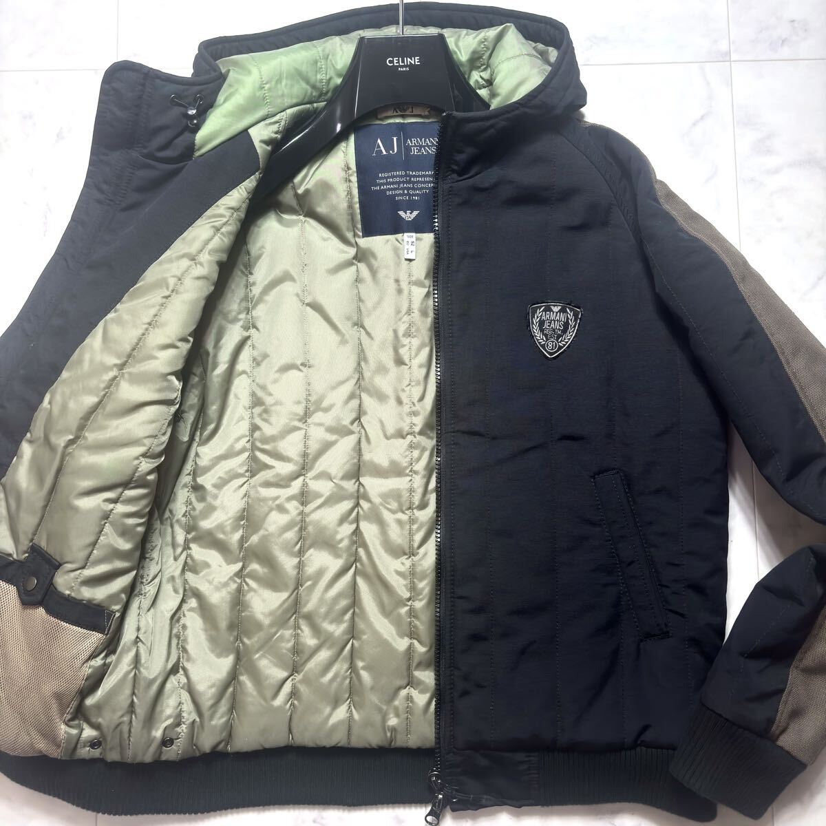 > 美品/超希少!XXL ARMANI JEANS ダウンジャケット ブルゾン 中綿 ロゴワッペン ダブルジップ 洗える 袖ライン 52 メンズ アルマーニジーンズ