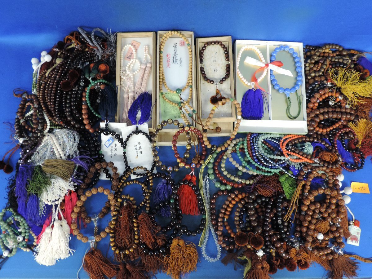 - ★T―498★数珠大量 約4kg分まとめて 本黒丹印度ヒスイ/星月菩提珠/四国別格二十霊場 弘法大師/金剛峯寺/阿弥陀如来 等 お念珠[100]