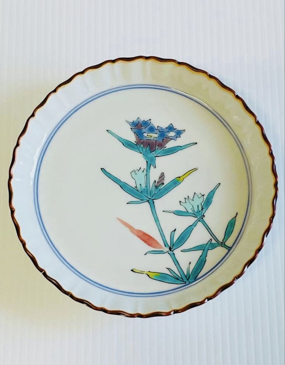 - 九谷焼 武腰潤 色絵花文絵飾皿 直径16cm