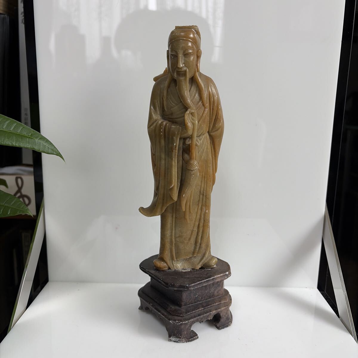 - 中国骨董 寿山石彫刻 剣客寿星図 置物 手彫り 時代物 彫刻 中国美術
