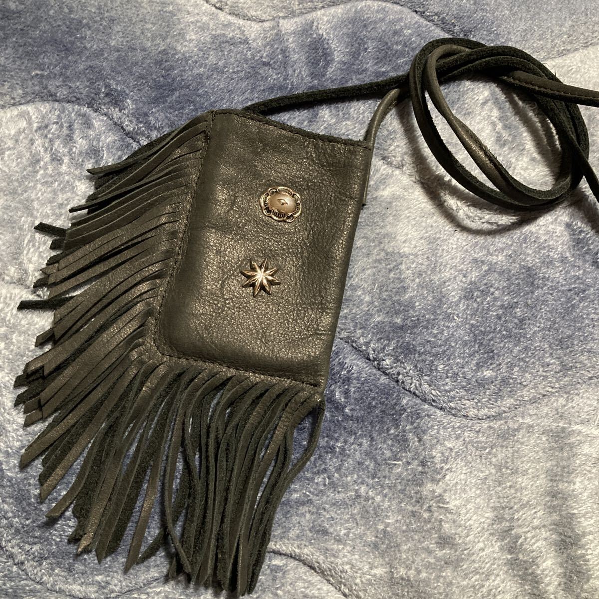 - tres トレ シルバーコンチョ レザー フリンジ ミニ ショルダーバッグ 本革 カードケース ポーチ クイックポケット 小物入れ ポシェット