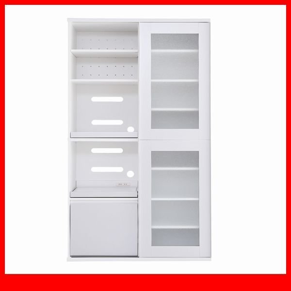 - 食器棚★ガラス引戸食器棚 家電収納庫/スライド式ガラス扉/幅100cm コンセント付き/銀 シルバー/a4