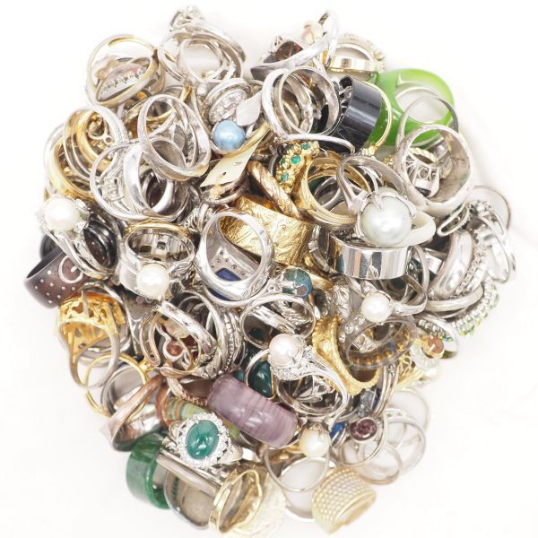 > YG1117) 1円 指輪 大量セット 約500g 真珠 パール シルバー カラーストーン リング 多数 アクセサリー ジャンク