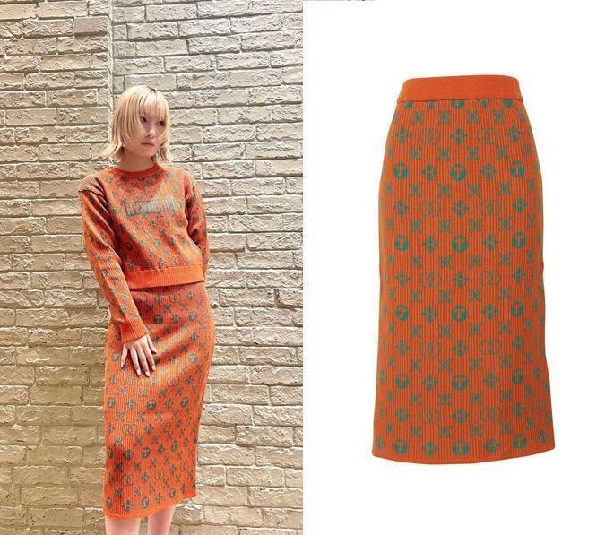 - ジャカード ペンシルスカート HYSTERIC GLAMOUR ヒステリックグラマー ヒスグラ モノグラム ニットスカート タイトスカート 総柄