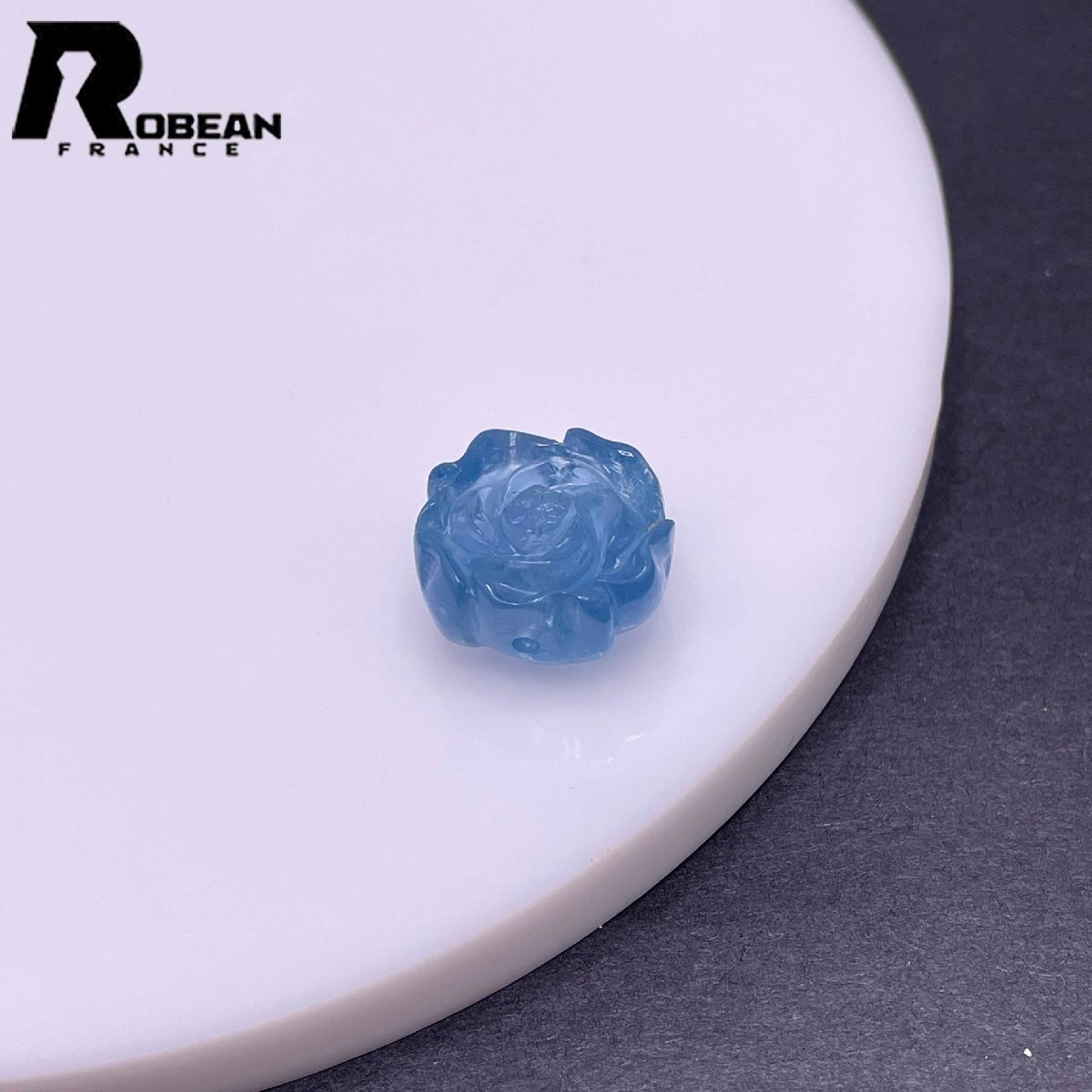 - 夢色 EU製 定価6万円★ROBEAN・ブルーグリーンアクアマリン★パワーストーン アクセサリー 天然石 手彫り牡丹 ギフト 約14.8*8mm M0219315