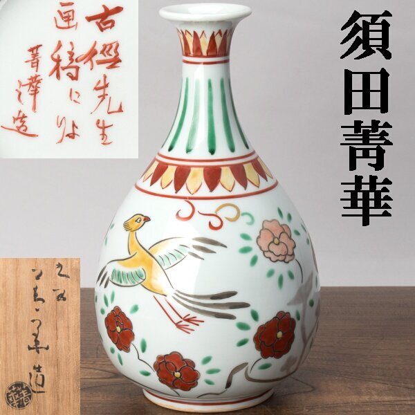 > 【千h0559】九谷焼 須田菁華 華瓶 小林古径 原画 赤絵 花鳥図 高さ約26cm 共箱 菁華 花入 花瓶 花器 九谷