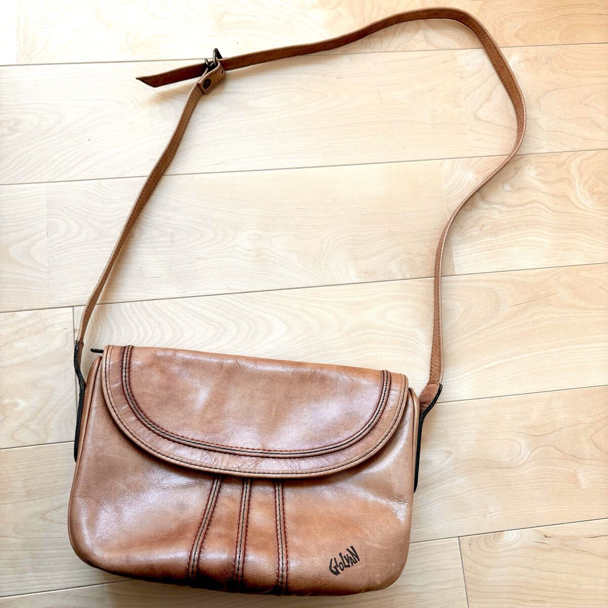 - 本革ショルダーバッグ レザー キャメルブラウン 茶色 クラシカル 斜め掛けバッグ ヴィンテージ風 レザーショルダーバッグ