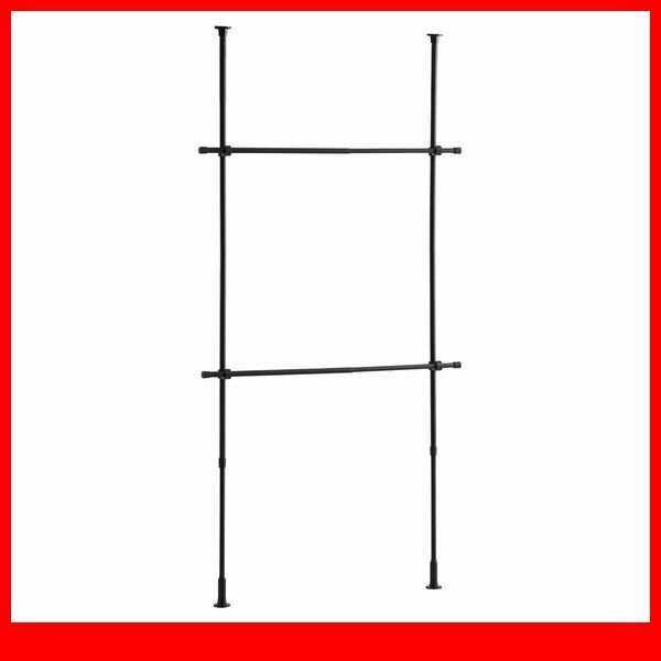 > ハンガーラック★新品/シンプル つっぱりハンガーラック 2段 幅70~120cm 高さ調整可能/ビス止め不要 賃貸OK/ブラック/a1