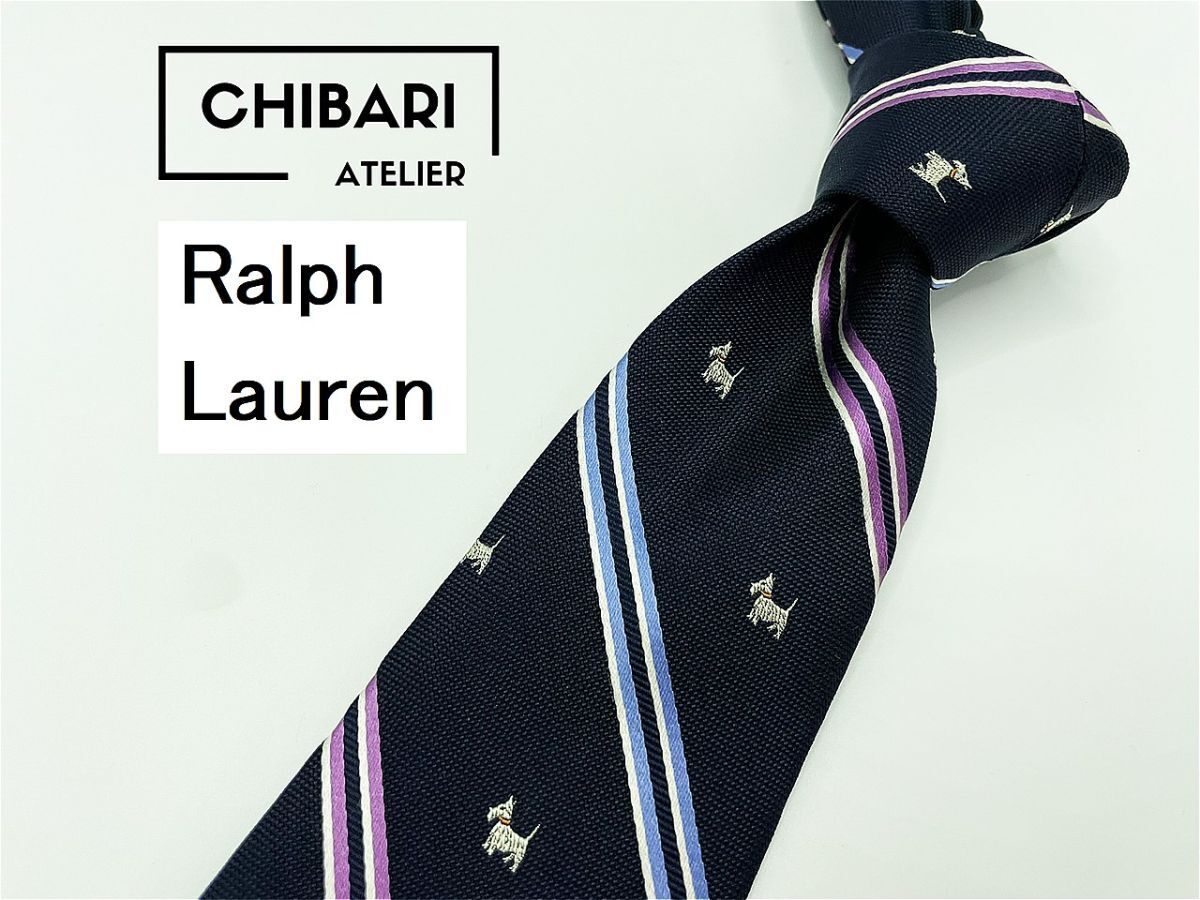 > 【新古品】Ralph Lauren ラルフローレン ワンちゃん&レジメンタル柄 ネクタイ 3本以上 送料無料 メンズ ネイビー 1102014