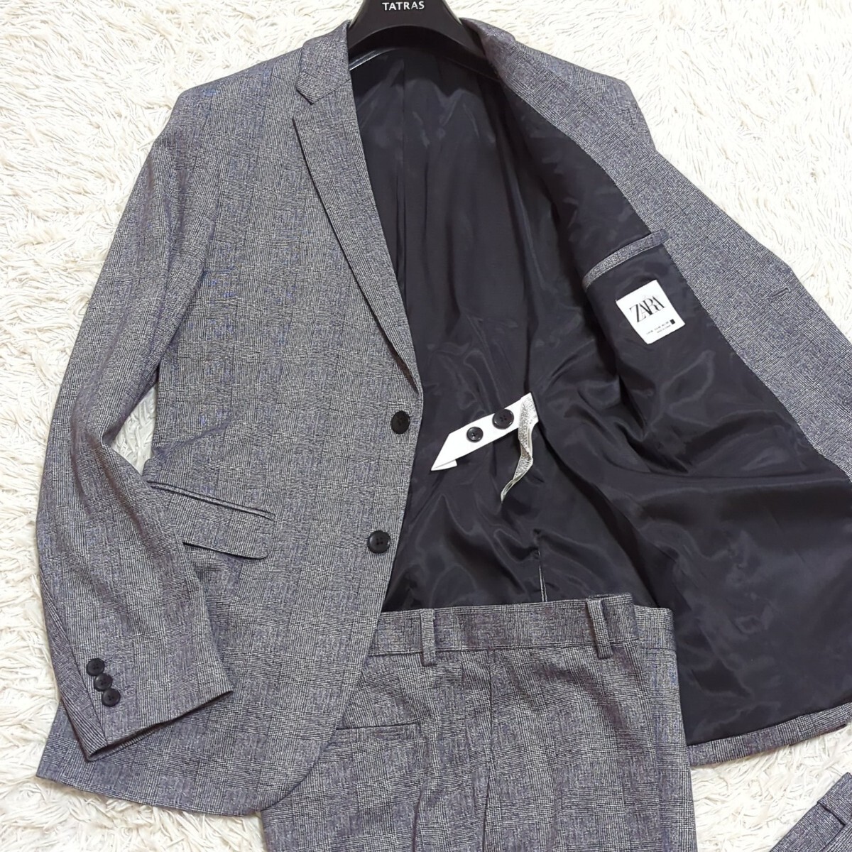 - 未使用級 希少XL ザラ ジャージ素材 グレンチェック ストレッチ トラベルスーツ セットアップ テーラードジャケット ZARA メンズ ビジネス