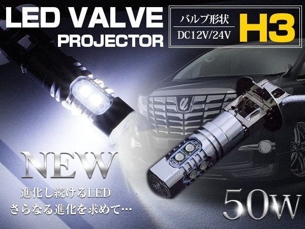 > 『1球』CREE製 LED H3 50W 12V/24V ホワイト フォグランプ LEDバルブ LED球 電球 スーパーグレート クオン ギガ GIGA プロフィア