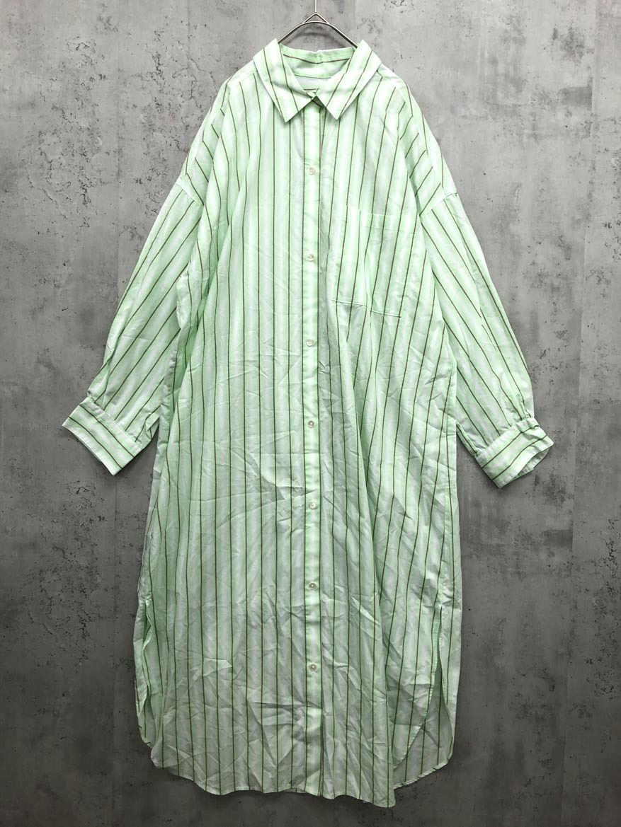 - green label relaxing グリーンレーベルリラクシング 3626-169-2893 タック スリーブ シャツ ストライプ ワンピース グリーン系 ■■