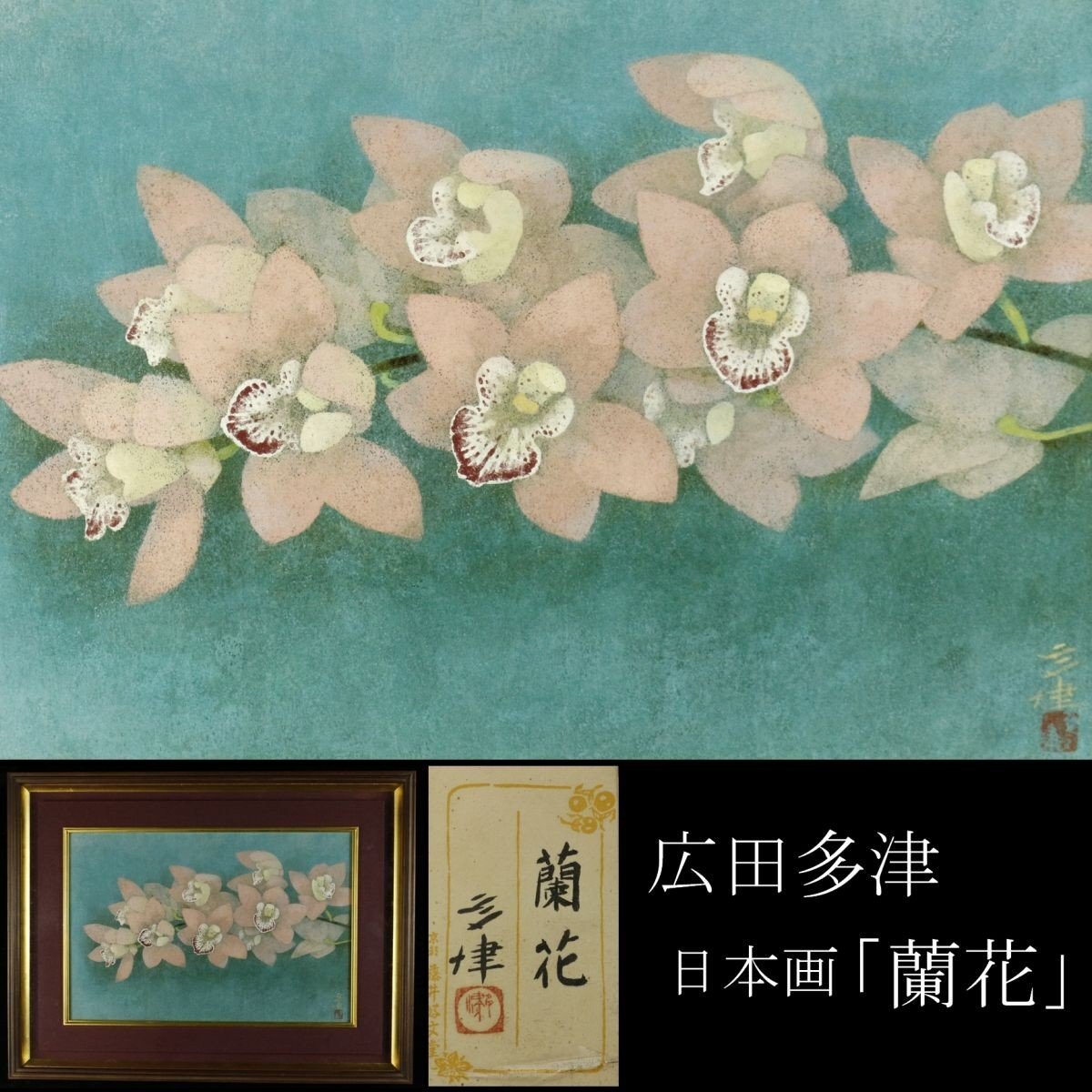 - 【LIG】真作保証 広田多津 「蘭花」 日本画8号 共シール 京画壇巨匠 師:竹内栖鳳 [.TO]23.12