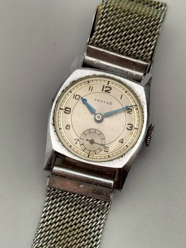 - R7-672 1円~ ジャンク品 CENTER 手巻き スモセコ 腕時計 レディース シルバーカラー 社外ベルト